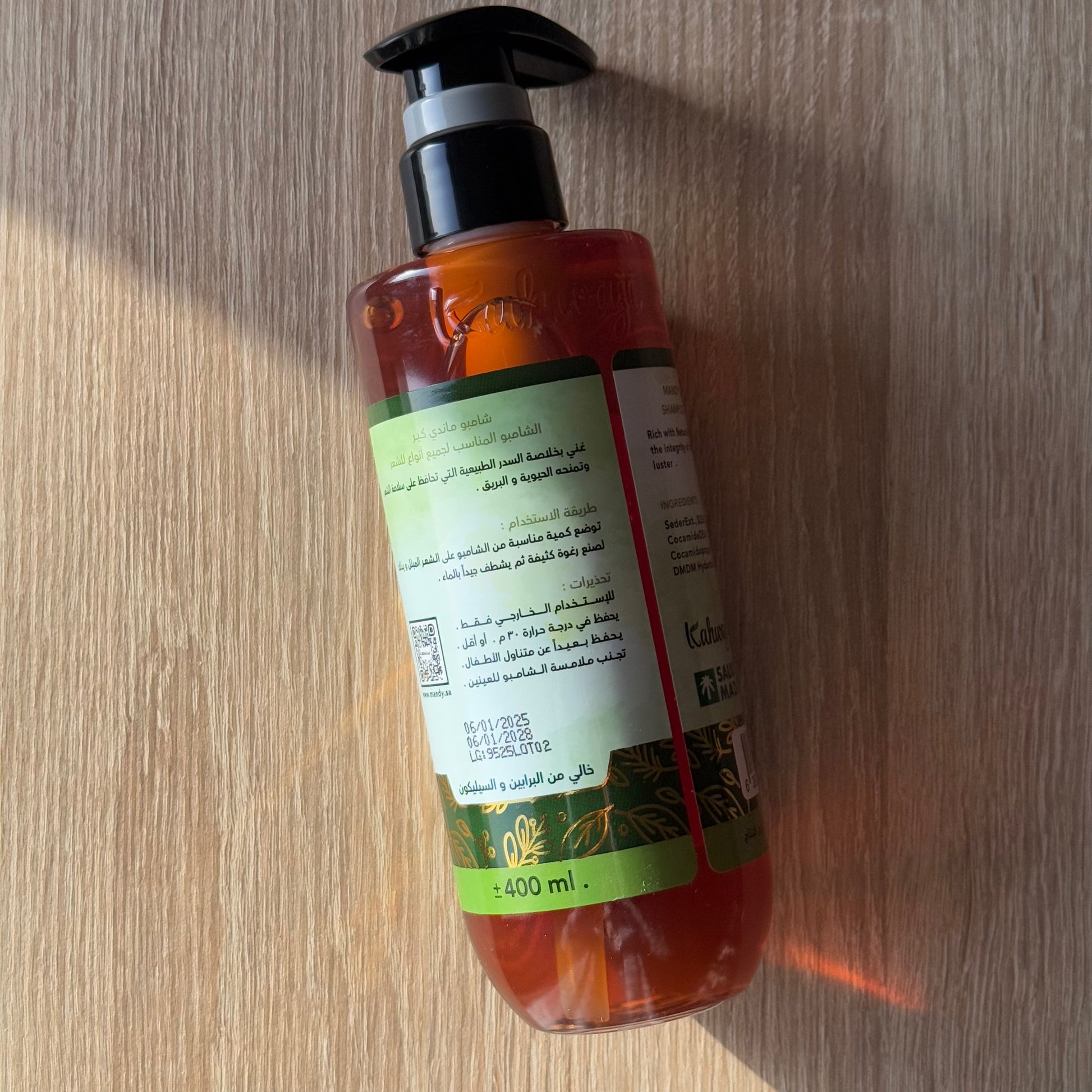 شامبو طبيعي غني بخلاصة السدر ، خالي من البرابين و السيليكون، يعالج القشرة والإفرازات الدهنية يعمل على تطهير فروة الرأس